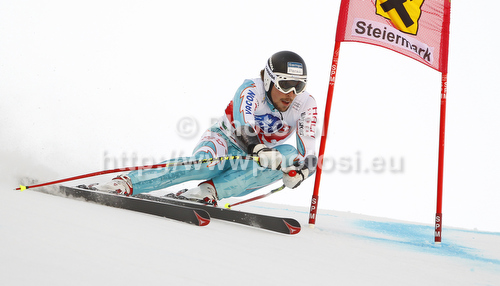 : Andreas Romar of Finland skiing in men super-g race of Audi FIS Alpine skiing World cup finals in Schladming, Austria. Men super-g race of Audi FIS Alpine skiing World cup finals was held in Schladming, Austria, on Thursday, 15th of March 2012.