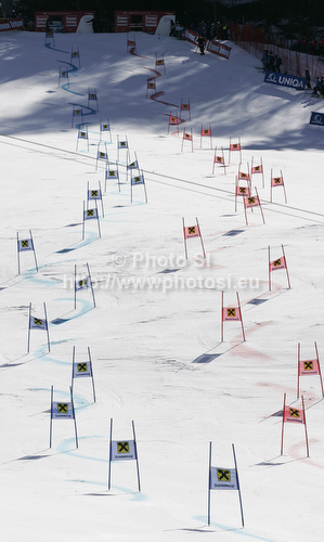 : Race course of team event race of Audi FIS Alpine skiing World cup finals in Schladming, Austria. Team event race of Audi FIS Alpine skiing World cup finals was held in Schladming, Austria, on Friday, 16th of March 2012.
