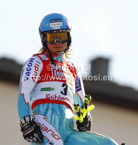 : Tanja Poutiainen of Finland after DNF in first run of women slalom race of Audi FIS Alpine skiing World cup finals in Schladming, Austria. Women slalom race of Audi FIS Alpine skiing World cup finals was held in Schladming, Austria, on Saturday, 17th of March 2012.