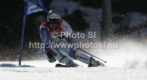 : Beat Feuz of Switzerland skiing in first run of men giant slalom race of Audi FIS Alpine skiing World cup finals in Schladming, Austria. Men giant slalom race of Audi FIS Alpine skiing World cup finals was held in Schladming, Austria, on Saturday, 17th of March 2012.
