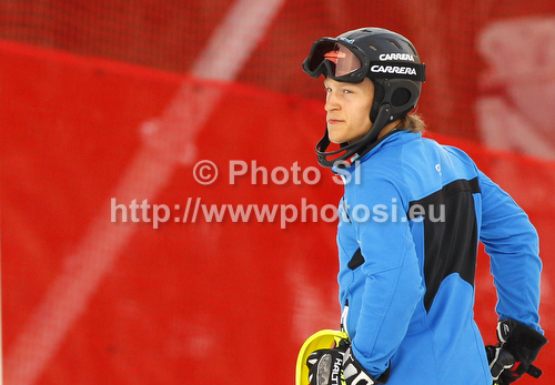 : Santeri Paloniemi of Finland during course inspection before start of first run of men slalom race of Audi FIS Alpine skiing World cup finals in Schladming, Austria. Men slalom race of Audi FIS Alpine skiing World cup finals was held in Schladming, Austria, on Sunday, 18th of March 2012.