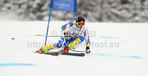 : Klemen Kosi of Slovenia skiing in men Super-g race of FIS Alpine skiing World Championships in Schladming, Austria. Men super-g race of FIS Alpine skiing World championships Schladming 2013, was held in Scladming, Austria, on Wednesday, 6th of February 2013.