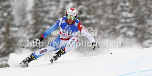 : Marc Gisin of Switzerland skiing in first training for men downhill race of FIS Alpine skiing World Championships in Schladming, Austria. First training for men downhill race of FIS Alpine skiing World championships Schladming 2013, was held in Schladming, Austria, on Thursday, 7th of February 2013.