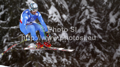 : Werner Heel of Italy skiing in second training for men downhill race of FIS Alpine skiing World Championships in Schladming, Austria. Second training for men downhill race of FIS Alpine skiing World championships Schladming 2013, was held in Schladming, Austria, on Friday, 8th of February 2013.