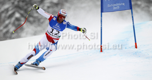 Schladming ,Austria - 09.02.2013 : Didier Defago of Switzerland skiing in men downhill race of FIS Alpine skiing World Championships in Schladming, Austria. Men downhill race of FIS Alpine skiing World championships Schladming 2013, was held in Schladming, Austria, on Saturday, 9th of February 2013. Photo by: Primoz Jeroncic