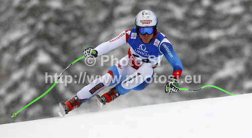 : Carlo Janka of Switzerland skiing in men downhill race of FIS Alpine skiing World Championships in Schladming, Austria. Men downhill race of FIS Alpine skiing World championships Schladming 2013, was held in Schladming, Austria, on Saturday, 9th of February 2013.