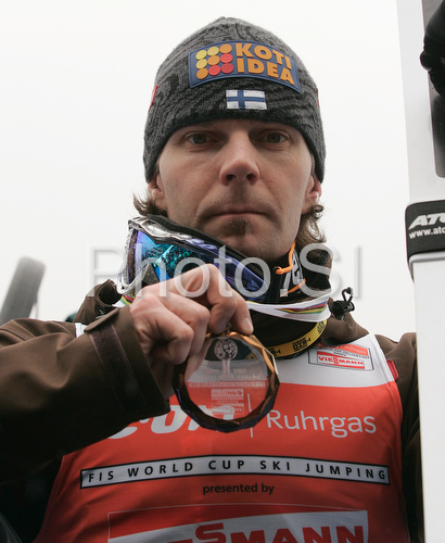 : Overall World Cup third placed Janne Ahonen of Finland celebrate his medal won in FIS Ski jumping World Cup finals in Planica, Slovenia. Last race of FIS Ski jumping World cup were held in Planica, Slovenia, on K215 ski flying hill on 16th of March, 2008. FIS Ski jumping World cup finals were held in Planica, Slovenia between 13th and 16th of March 2008.