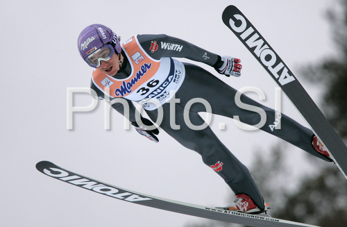 : Martin Schmitt of Germany soars through the air during first round of day 1 of FIS Ski jumping World Cup finals in Planica, Slovenia. First day of FIS Ski jumping World cup finals was held on Friday, 20th of March 2009 in Planica, Slovenia.