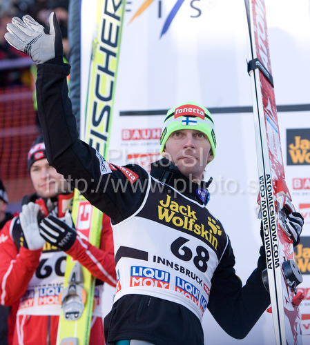 : Third placed Janne Ahonen of Finland at the medal ceremony after he competed in the Final Round of the FIS Ski Jumping World Cup event of the 58th Four Hills ski jumping tournament, on January 3, 2010 in Bergisel, Innsbruck, Austria.