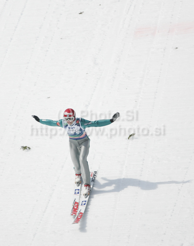 : Matti Hautamaeki of Finland soars through the air during his jump during second day of FIS Ski flying World championships in Planica, Slovenia. Second day of FIS Ski flying World Championships was held on Saturday, 20th of March 2010, in Planica, Slovenia.