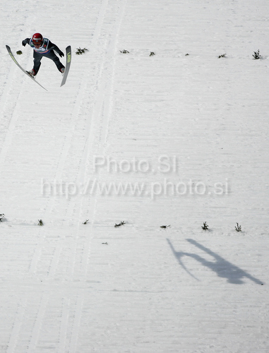 : Janne Happonen of Finland soars through the air during his jump during second day of FIS Ski flying World championships in Planica, Slovenia. Second day of FIS Ski flying World Championships was held on Saturday, 20th of March 2010, in Planica, Slovenia.