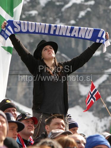 : Finish fans in outrun during team event of FIS Ski flying World championships in Planica, Slovenia. Team event of FIS Ski flying World Championships was held on Sunday, 21st of March 2010, in Planica, Slovenia.