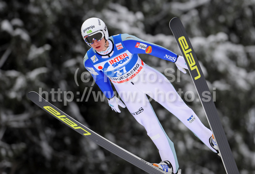 : Peter Prevc (SLO) during FIS Ski jumping World cup race in Engelberg, Switzerland. FIS Ski jumping World cup in Engelberg, Switzerland was held on 18th of December 2010.