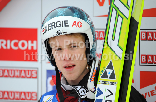: Michael Hayboeck (AUT) during FIS Ski jumping World cup race in Engelberg, Switzerland. FIS Ski jumping World cup in Engelberg, Switzerland was held on 18th of December 2010.
