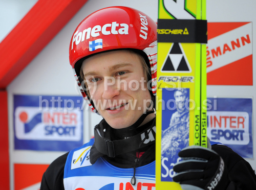 : Ville Larinto (FIN) during FIS Ski jumping World cup race in Engelberg, Switzerland. FIS Ski jumping World cup in Engelberg, Switzerland was held on 18th of December 2010.