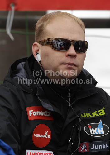 Planica ,Slovenia - 18.03.2011 : Finnish coach Pekka Niemelae during trial round of day 1 of FIS ski jumping World Cup 2010-2011 finals in Planica, Slovenia. Individual competition on first day of FIS ski jumping World cup finals was held on Friday, 18th of March 2011, in Planica, Slovenia. Photo by: Primoz Jeroncic