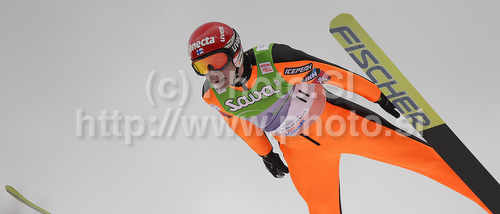 : Olli Muotka of Finland soars through the air in first round of day 1 of FIS ski jumping World Cup 2010-2011 finals in Planica, Slovenia. Individual competition on first day of FIS ski jumping World cup finals was held on Friday, 18th of March 2011, in Planica, Slovenia.