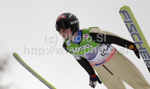 : Anders Jacobsen of Norway soars through the air in first round of day 1 of FIS ski jumping World Cup 2010-2011 finals in Planica, Slovenia. Individual competition on first day of FIS ski jumping World cup finals was held on Friday, 18th of March 2011, in Planica, Slovenia.