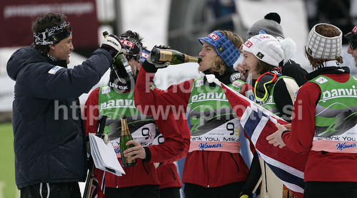 : Norwegian coach Mika Kojonkoski saying good bye to his athletes after second round of day 2 of FIS ski jumping World Cup 2010-2011 finals in Planica, Slovenia. Team competition on second day of FIS ski jumping World cup finals was held on Saturday, 19th of March 2011, in Planica, Slovenia.