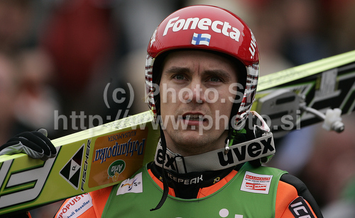 : Anssi Koivuranta of Finland in outrun of second round of day 2 of FIS ski jumping World Cup 2010-2011 finals in Planica, Slovenia. Team competition on second day of FIS ski jumping World cup finals was held on Saturday, 19th of March 2011, in Planica, Slovenia.