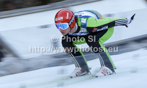 : Andreas Wank of Germany on inrun during trial round of Flying hill individual competition of FIS World cup ski jumping finals in Planica, Slovenia. Flying hill Individual competition FIS World ski jumping finals was held on Friday, 16th of March 2012, in Planica, Slovenia.