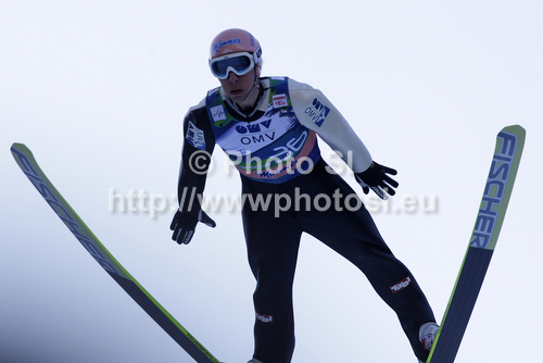 : Martin Koch of Austria soars through the air during 1st round of Flying hill individual competition of FIS World cup ski jumping finals in Planica, Slovenia. Flying hill Individual competition FIS World ski jumping finals was held on Friday, 16th of March 2012, in Planica, Slovenia.