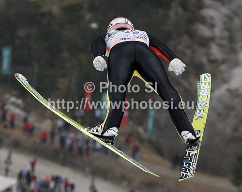 : Severin Freund of Germany soars through the air during the trial round of the Flying hill Individual competition of FIS World cup ski jumping finals in Planica, Slovenia. Flying hill Individual competition FIS World ski jumping finals was held on Sunday, 18th of March 2012, in Planica, Slovenia.