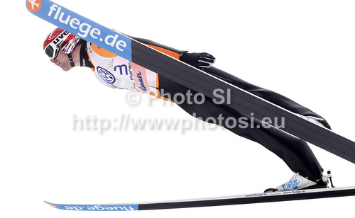 : Anssi Koivuranta of Finland soars through the air during the first round of the Flying hill Individual competition of FIS World cup ski jumping finals in Planica, Slovenia. Flying hill Individual competition FIS World ski jumping finals was held on Sunday, 18th of March 2012, in Planica, Slovenia.