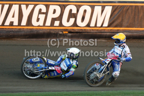 : Tomasz Gollob (POL) and Nicki Pedersen (DEN) during European GP Speedway Grand Prix 2011 race in Leszno, Poland. European GP Speedway Grand Prix was held on Saturday, 30th of April 2011 in Leszno, Poland.
