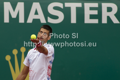: Novak Djokovic (SRB) in action during the second round match between Novak Djokovic (SRB) and Andreas Seppi (ITA) at the ATP Monte Carlo Masters tennis tournament held in the Monte Carlo Country Club, Monaco..