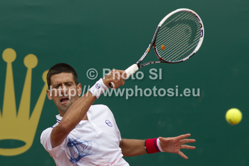 Monte Carlo ,Monaco - 18.04.2012 : Novak Djokovic (SRB) in action during the second round match between Novak Djokovic (SRB) and Andreas Seppi (ITA) at the ATP Monte Carlo Masters tennis tournament held in the Monte Carlo Country Club, Monaco.. Photo by: Stringer
