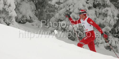 : Ola Vigen Hattestad of Norway skiing during qualifications for Men sprint race of Viessmann Cross country skiing FIS World Cup 2009-10. Qualifications for Men sprint race of Viessmann Cross country skiing FIS World Cup were held in Rogla, Slovenia, on 19th of December 2009.
