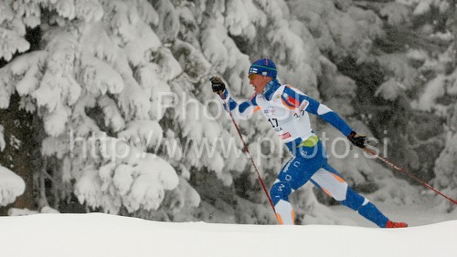 : Lasse Paakkonen of Finland skiing during qualifications for Men sprint race of Viessmann Cross country skiing FIS World Cup 2009-10. Qualifications for Men sprint race of Viessmann Cross country skiing FIS World Cup were held in Rogla, Slovenia, on 19th of December 2009.