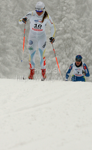 : Anna Haag of Sweden skiing during finals of Women sprint race of Viessmann Cross country skiing FIS World Cup 2009-10. Women sprint race of Viessmann Cross country skiing FIS World Cup were held in Rogla, Slovenia, on 19th of December 2009.