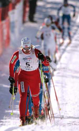 : Vibeke Skofterud of Norway skiing in Women 15km classic mass start race of Viessmann Cross country skiing FIS World Cup 2009-10. Women 15km classic mass start race of Viessmann Cross country skiing FIS World Cup were held in Rogla, Slovenia, on 20th of December 2009.