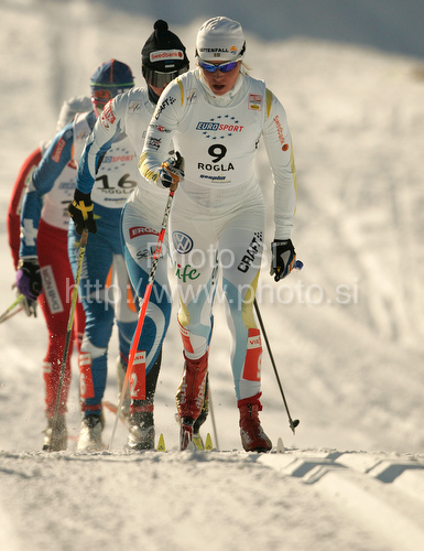 Rogla ,Slovenia - 20.12.2009 : Third placed Anna Haag of Sweden skiing in Women 15km classic mass start race of Viessmann Cross country skiing FIS World Cup 2009-10. Women 15km classic mass start race of Viessmann Cross country skiing FIS World Cup were held in Rogla, Slovenia, on 20th of December 2009. Photo by: Primoz Jeroncic