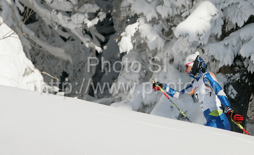 : Riitta-Liisa Roponen of Finland skiing in Women 15km classic mass start race of Viessmann Cross country skiing FIS World Cup 2009-10. Women 15km classic mass start race of Viessmann Cross country skiing FIS World Cup were held in Rogla, Slovenia, on 20th of December 2009.