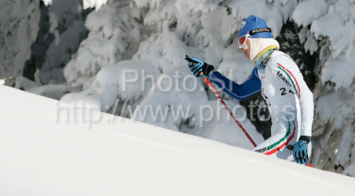 : Antonella Confortola Wyatt of Italy skiing in Women 15km classic mass start race of Viessmann Cross country skiing FIS World Cup 2009-10. Women 15km classic mass start race of Viessmann Cross country skiing FIS World Cup were held in Rogla, Slovenia, on 20th of December 2009.