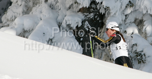 : Katrin Zeller of Germany skiing in Women 15km classic mass start race of Viessmann Cross country skiing FIS World Cup 2009-10. Women 15km classic mass start race of Viessmann Cross country skiing FIS World Cup were held in Rogla, Slovenia, on 20th of December 2009.