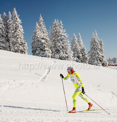 Rogla ,Slovenia - 20.12.2009 : Vesna Fabjan of Slovenia skiing in Women 15km classic mass start race of Viessmann Cross country skiing FIS World Cup 2009-10. Women 15km classic mass start race of Viessmann Cross country skiing FIS World Cup were held in Rogla, Slovenia, on 20th of December 2009. Photo by: Leena Jeroncic