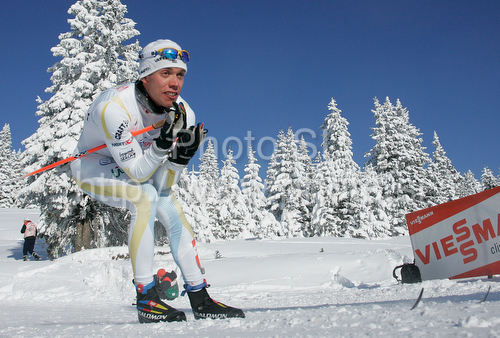 : Marcus Hellner of Sweden skiing in Men 30km classic mass start race of Viessmann Cross country skiing FIS World Cup 2009-10. Men 30km classic mass start race of Viessmann Cross country skiing FIS World Cup were held in Rogla, Slovenia, on 20th of December 2009.