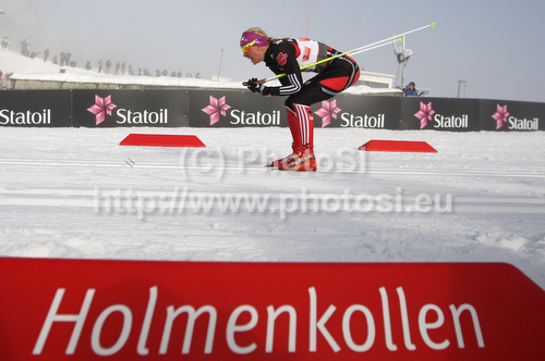 : Stefanie Boehler of Germany skiing in women 4x5km relay race of FIS Nordic skiing World championships in Oslo, Norway. Women 4x5km relay race of FIS Nordic skiing World championships was held on Holmenkollen above Oslo, Norway, on Thursday, 3rd of March 2011.