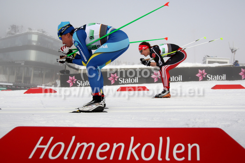 Oslo ,Norway - 03.03.2011 : Oxana Jatskaja of Kazakhstan and Kathrin Zeller of Germany skiing in women 4x5km relay race of FIS Nordic skiing World championships in Oslo, Norway. Women 4x5km relay race of FIS Nordic skiing World championships was held on Holmenkollen above Oslo, Norway, on Thursday, 3rd of March 2011. Photo by: Tomasz Jastrzebowski / PhotoSI