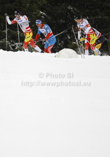 : Skiers skiing during men 15km classic race of FIS cross country skiing World cup race in Rogla, Slovenia. Men 15km classic race of FIS cross country skiing World cup was held on Rogla, Slovenia, on Saturday, 17th of December 2011.