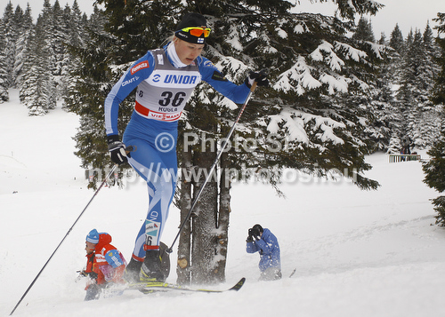 : Anne Kylloenen of Finland skiing during women 10km classic race of FIS cross country skiing World cup race in Rogla, Slovenia. Women 10km classic race of FIS cross country skiing World cup was held on Rogla, Slovenia, on Saturday, 17th of December 2011.