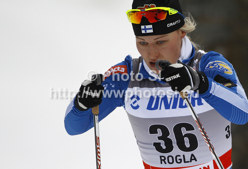 Rogla ,Slovenia - 17.12.2011 : Anne Kylloenen of Finland skiing during women 10km classic race of FIS cross country skiing World cup race in Rogla, Slovenia. Women 10km classic race of FIS cross country skiing World cup was held on Rogla, Slovenia, on Saturday, 17th of December 2011. Photo by: Primoz Jeroncic