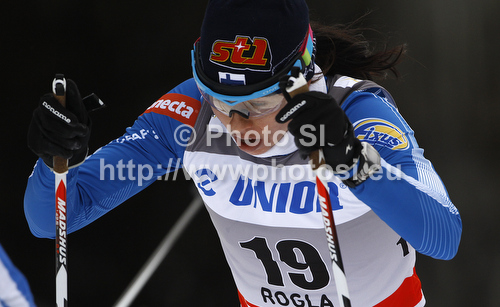 : Laura Ahervo of Finland skiing during women 10km classic race of FIS cross country skiing World cup race in Rogla, Slovenia. Women 10km classic race of FIS cross country skiing World cup was held on Rogla, Slovenia, on Saturday, 17th of December 2011.