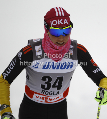 : Stefanie Boehler of Germany skiing during women 10km classic race of FIS cross country skiing World cup race in Rogla, Slovenia. Women 10km classic race of FIS cross country skiing World cup was held on Rogla, Slovenia, on Saturday, 17th of December 2011.