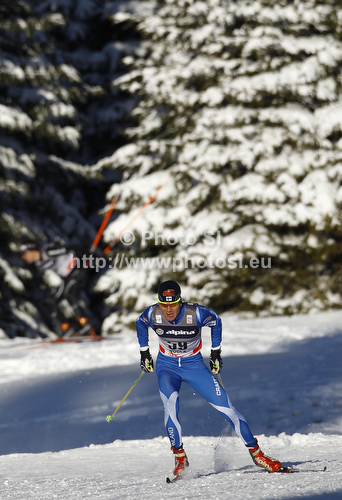 : Ville Nousiainen of Finland skiing during qualifications for men sprint free style race of FIS cross country skiing World cup race in Rogla, Slovenia. Men sprint race of FIS cross country skiing World cup was held on Rogla, Slovenia, on Sunday, 18th of December 2011.