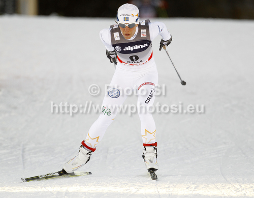 : Charlotte Kalla of Sweden skiing during qualifications for women sprint free style race of FIS cross country skiing World cup race in Rogla, Slovenia. Women sprint race of FIS cross country skiing World cup was held on Rogla, Slovenia, on Sunday, 18th of December 2011.